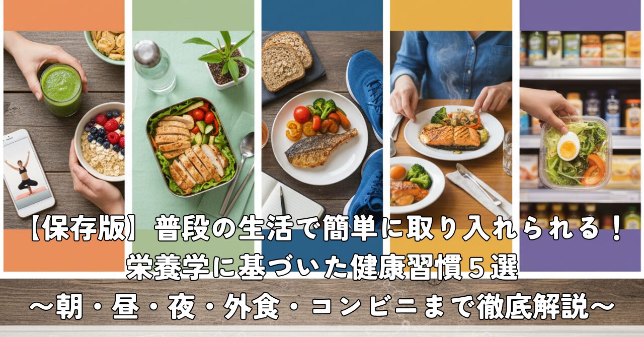 この記事では、栄養学に基づいた“すぐに実践できる健康習慣”を、朝・運動前・夜・外食・コンビニの5シーンに分けて紹介します。どれも難しいルールはありません。「これならできそう!」と思えるコツばかりです。今日からぜひ取り入れてみてください。